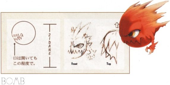 Bombs are shaped similar to a fireball with hands and a face, and are capable of self-destructing. They come in several different colors and usually have bright yellow eyes and a wicked, toothy grin. True to their name, their primary method of damage is Exploder, but only after suffering significant damage (but not enough to kill it outright, that is the only method to kill a bomb and not set it off). Before this, though, they are prone to biting and casting fire magic.