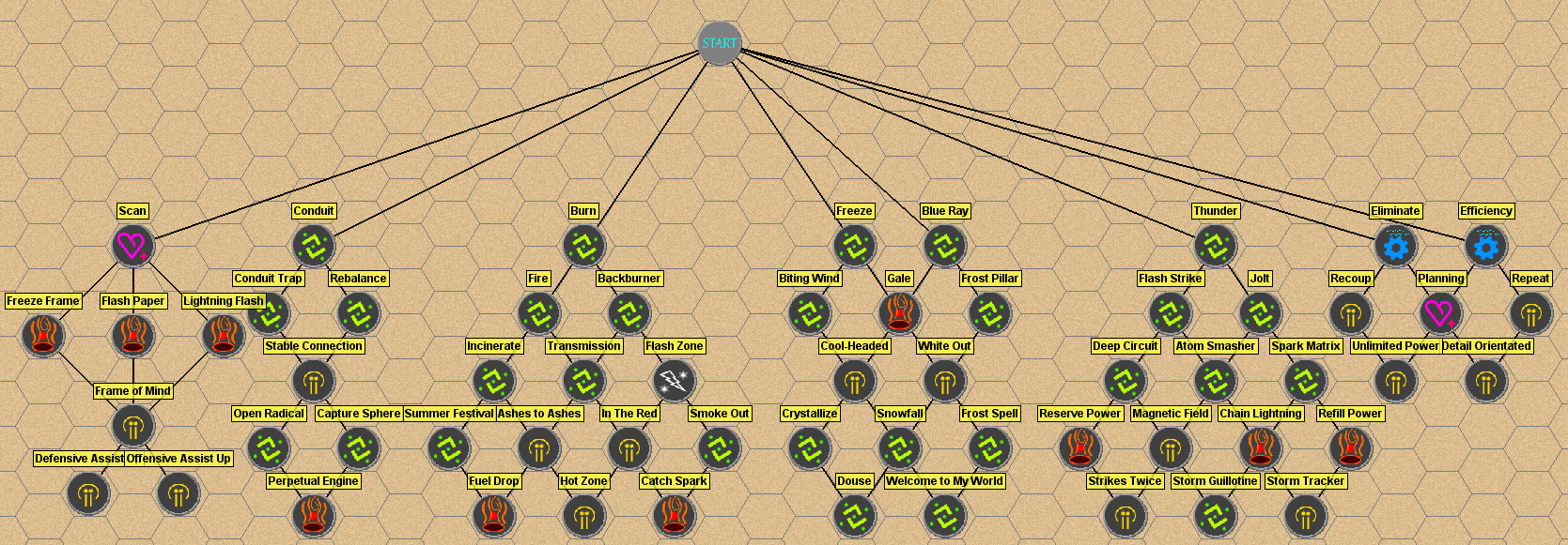 A carefully-gathered web of energy surges outward, burning the target for 24 x MAG + d12 magical damage. Each hit suffered while charging Spark Matrix delays you by +5D.